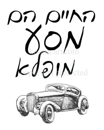 חותמת כיתוב "החיים הם מסע מופלא" עם רכב
